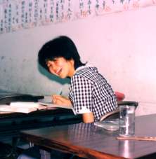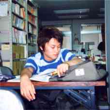 ◆ゆりか号中学1年~高校3年まで在籍。中高6年間,テニスをやり通したがんばりや。彼女が勉強するときはいつもいつもこんな姿勢か,左手で頬を支えるか,だった。勉強嫌いや,と言いながら,高校に入ってからも続けて通ってくれました。めっちゃ感激したことを覚えてます。今は福知に帰ってきてるはず。また,遊びに来てね~。(1998) |