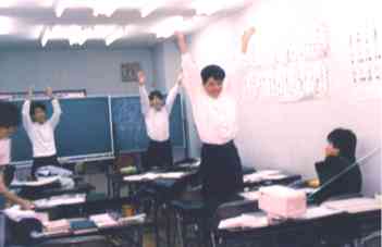 ◆女装の達人『オックー』塾(高校)を卒業してまだ2年しか立っていなのに,彼もまた伝説化されつつある人物。今,金沢に在住。彼は中学1年から高校3年まで在籍してました。中学校時代はほとんどしゃべらず,硬派を装っていたものの,ついに,高校3年で,女装の達人であることが発覚。その証拠写真は彼の名誉のために,掲載を見合わせたが,もし,掲載すれば,その種の業界から電話が鳴りっぱなしに違いない。(1999) |